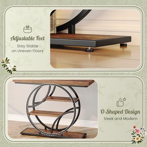 Huuger 41.3 Inch Entryway Table, Industrial Console Sofa Table with Storage, Accent Table with Shelves, for Entry, Hallway, Entrance, Foyer, O-Shaped Metal Frame, Rustic Brown